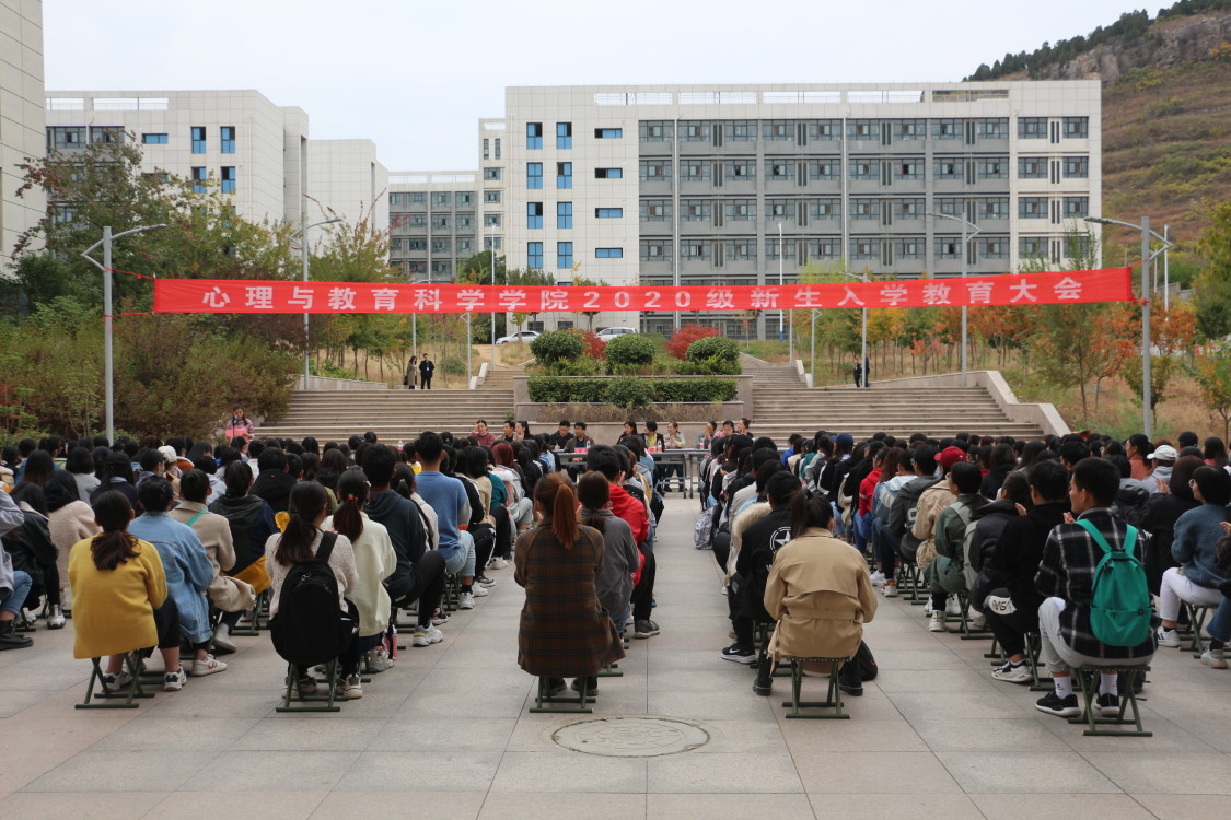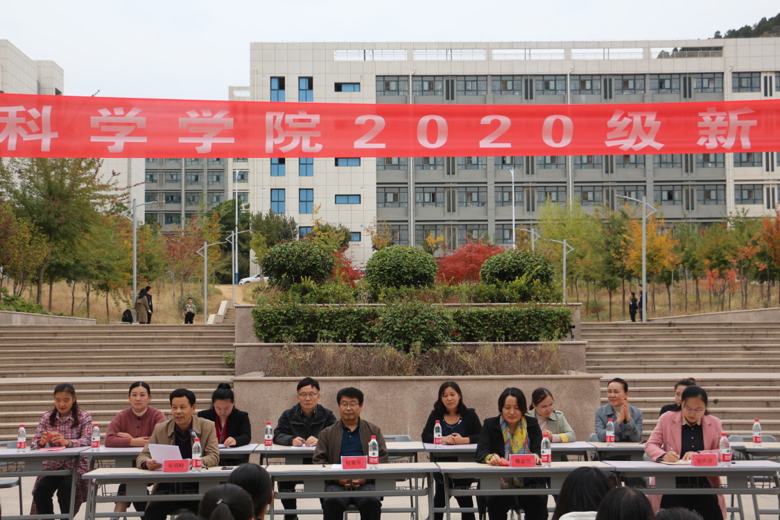 10月28日下午,BB贝博艾弗森官方网站在教师教育楼小广场召开2020级新生入学教育大会。学院党总支书记赵荣军、院长傅金兰、党总支副书记宋明峰、教师代表、新生辅导员、班主任及2020级全体新生共300余人参加会议,会议由宋明峰主持。