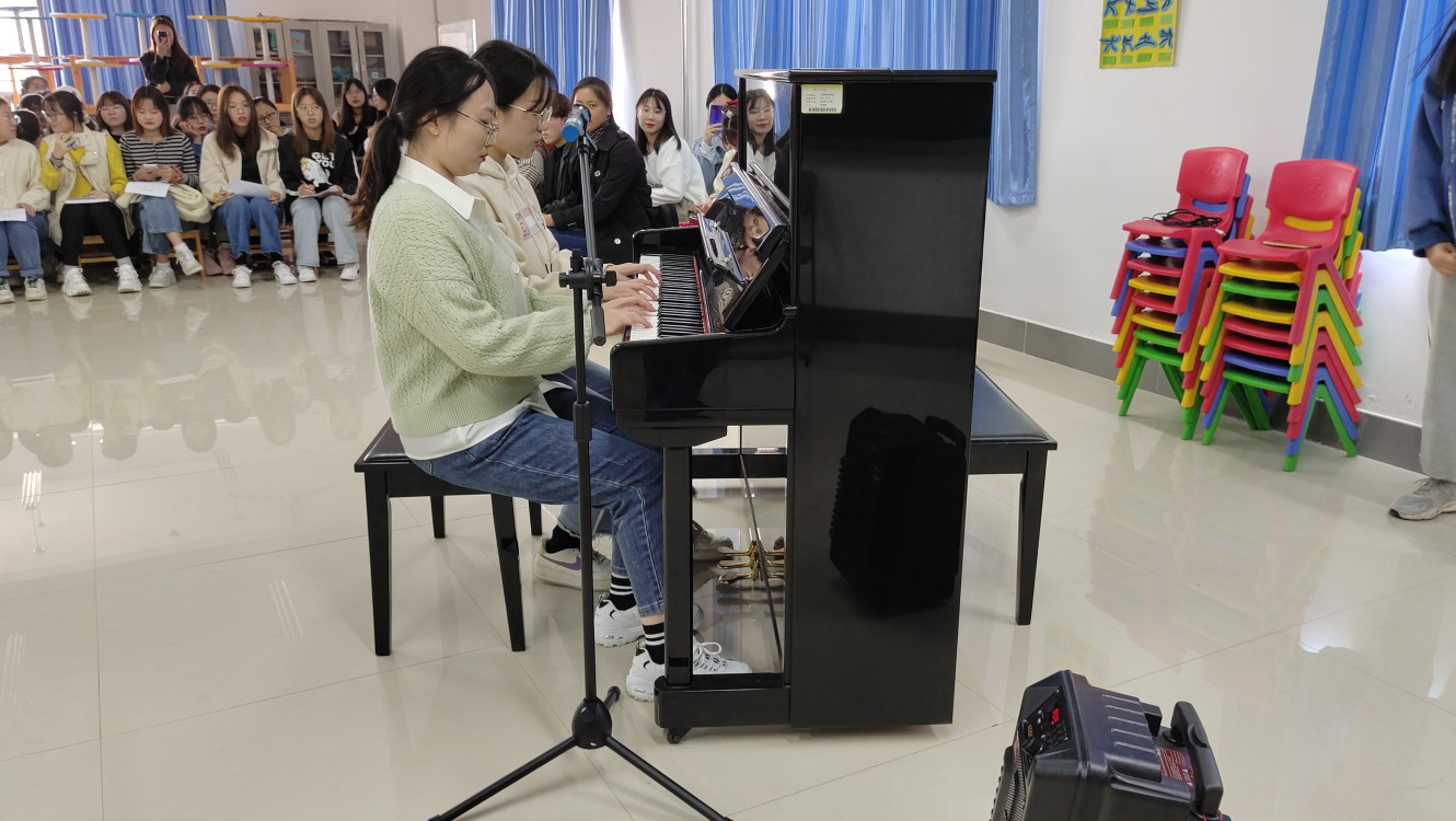 为展现大学生的能力与风采,拓宽同学们的专业学习视野,提高艺术修养与审美情趣,11月4日,我院于教师教育实验楼205室举办第一届师范生弹唱比赛。教师孔亚琴、赵昕担任评委,院长傅金兰、院长助理安洪涛到现场观看比赛。