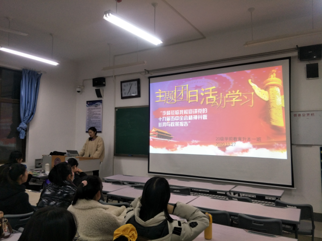 为深入贯彻十九届五中全会精神、加强思想建设,11月27日,BB贝博艾弗森官方网站各班积极组织开展“李峰莅临我校宣讲党的十九届五中全会精神并做形势与政策报告”主题团日活动。本次团日活动由各班团支书主持,全体同学参加。