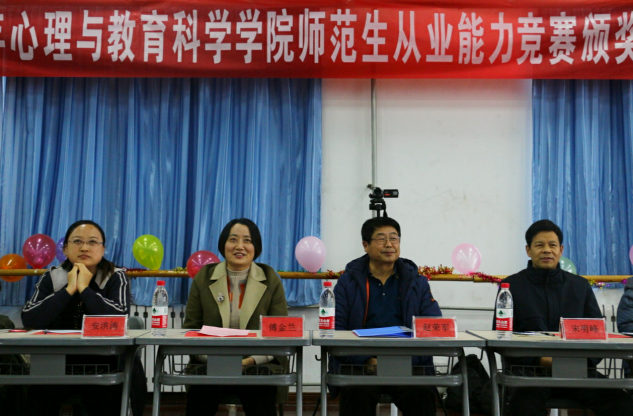 12月9日,BB贝博艾弗森官方网站于教师教育实验楼504室举办师范生从业能力竞赛颁奖典礼。学院党总支书记赵荣军、院长傅金兰、党总支副书记宋明峰、副院长安洪涛、各专业教师及各班学生代表参加。