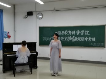钢琴弹唱考核在教师教育实验楼204、205室举行,考核对象为学前教育专业学生,以抽签形式决定弹唱曲目及出场顺序。考生们弹唱流畅,声音响亮、吐字清晰,声情并茂,一曲曲悠扬、欢快的曲目随着跳动的手指从钢琴里溢出。考核过后,评委老师们对同学们的表现进行了评价与总结,针对弹唱中存在的瑕疵加以指导,并指出了今后努力的方向。