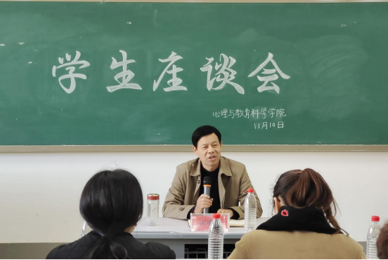11月10日,我院于教师教育楼301室召开了学生座谈会,院党总支副书记宋明峰、团总支书记张玉洁,教师代表陶宇、程菲菲、刘冠男、韩茜以及各班学生代表参与了此次活动。