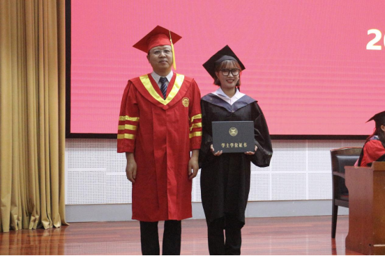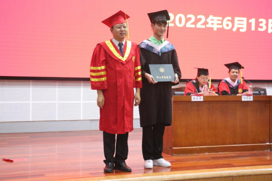 接着,伴随着欢快的乐曲,李目海与毕业生们一一握手、正冠拨穗,为他们颁发学位证书并合影留念,送上了对毕业生最诚挚殷切的祝福。