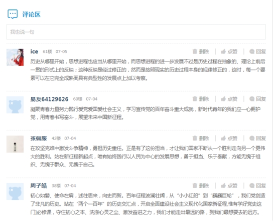 活动分为“读百年党史,忆峥嵘岁月”“纸盘寄初心,共绘新蓝图”“学榜样人物,承奋斗精神”三个模块。同学们在留言区分享自己对党史的了解感悟,表达自己的爱国爱党之情和理想抱负。在“学思践悟”中汲取智慧力量,为学生发展筑牢思想根基。