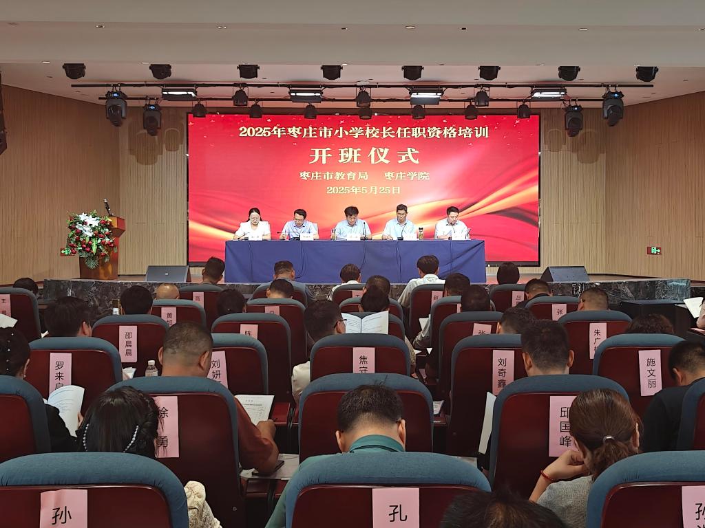 5月25日下午,由枣庄市教育局主办,我校承办的2025年枣庄市小学校长任职资格培训班在滕州市滨湖教育科技产业园开班。枣庄市教育局党组成员、市教育科学研究院院长邓淇,枣庄学院BB贝博艾弗森官方网站党委书记刘玉宝及相关负责人出席活动。全市70余位小学校长参加培训,开班仪式由继续教育学院副院长盖一飞主持。