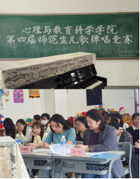 为推动师范类专业教育教学的改革创新,提高本专业学生的弹唱技能,5月8日,BB贝博艾弗森官方网站举办第四届儿歌弹唱竞赛,比赛在教师教育中心204、205室同步进行,本届竞赛的评委有王一小,孔亚琴,刘冠男,刘璐璐四位教师。
